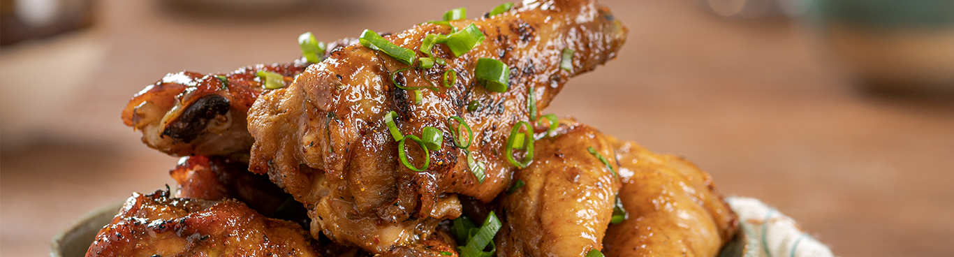 1. Em uma tigela misture todos os ingredientes e adicione as coxinhas de frango. Deixe marinando por pelo menos 2 horas.